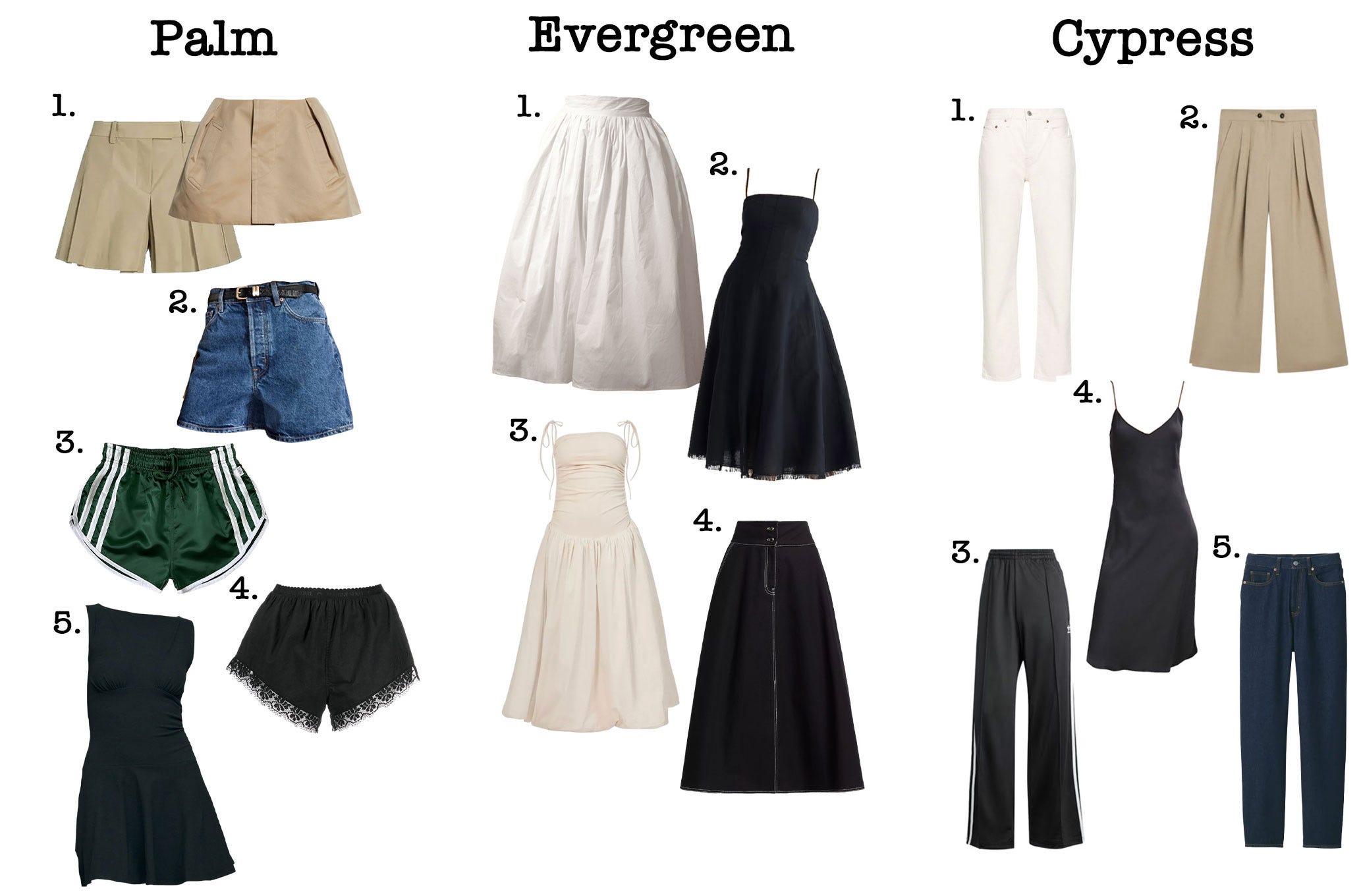 A heel with track pants, a sneaker with a skirt, a strappy sandal with trousers (my fave). This concept — which I call the Contradistinction Technique — is further explained below in Part 3. I suggest you work with your outfit's Silhouette from the Silhouette System™ (see Palm, Evergreen, and Cypress), all of which have shoe styles that tend to work best.