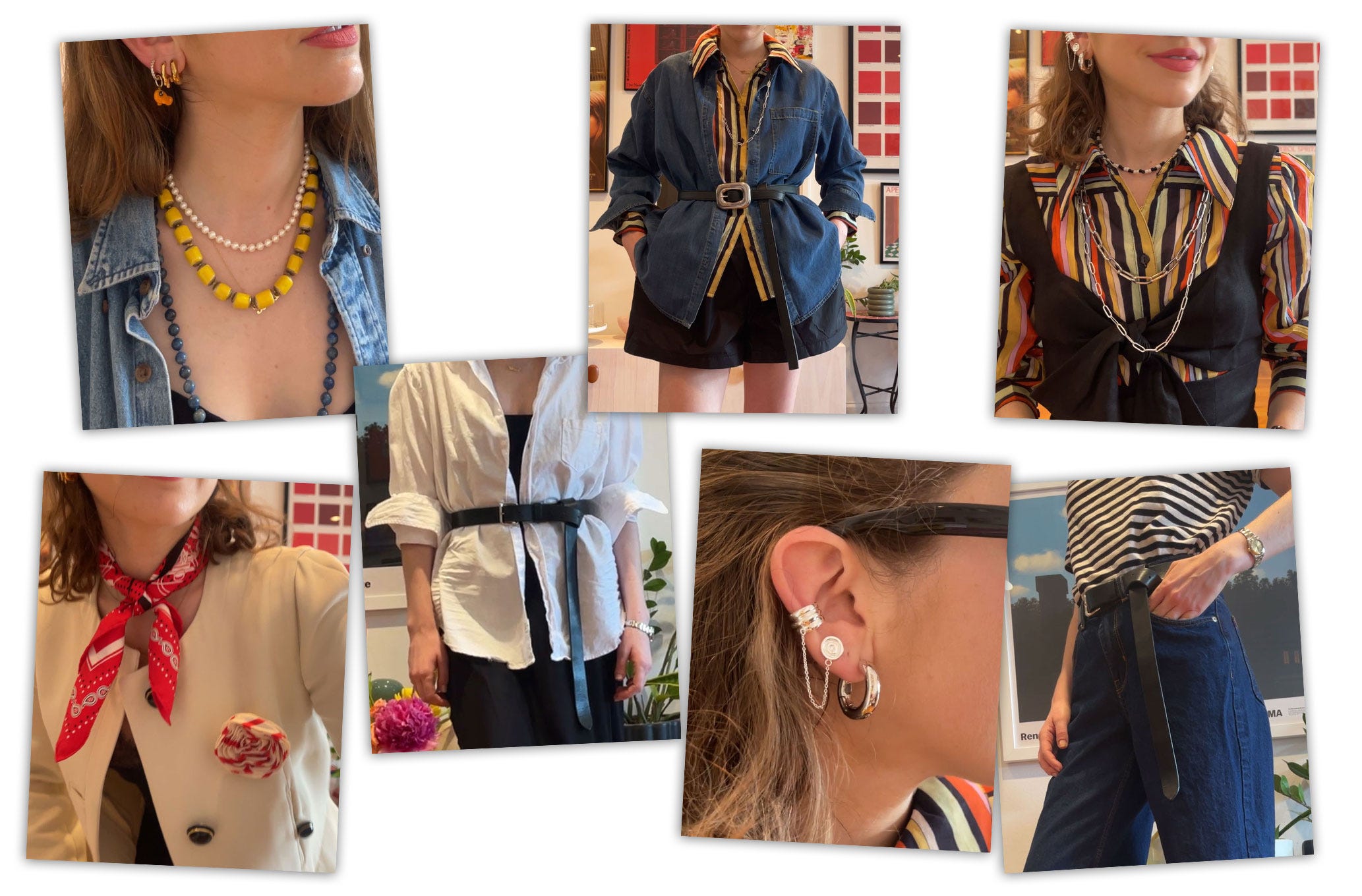 Part 4 is comprised of larger accessories that I find people often skimp on. But, as you can see in the above photos, they really help the look! Belts, neck scarves, collars — these are accessories that achieve the goals: a) emphasize the Silhouette and b) add personalization to otherwise simple items.